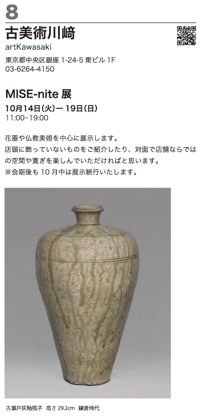 毎年恒例となってきた、『ミセニテ』AUTUMN ART WEEK が今年も日本橋・京橋・銀座の8つのギャラリーにて開催されます!
