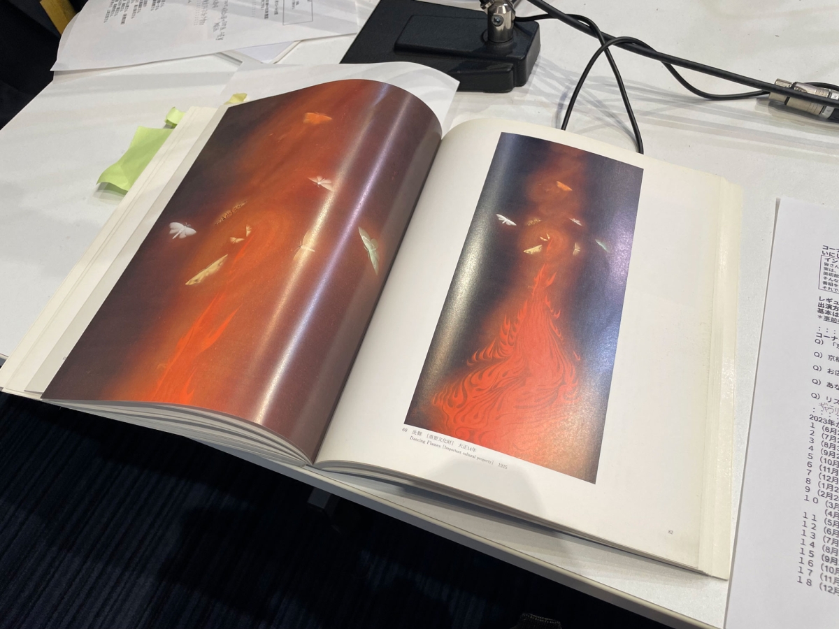 有名になっていますから、皆さんご存知かと思いますが、「炎舞」という炎と紅蓮の中に蛾が舞っている絵と、あと「名樹散椿」といいまして、五色の椿を一木に描いた四曲屏風があります。この2点が世間的には非常に有名だと思います。