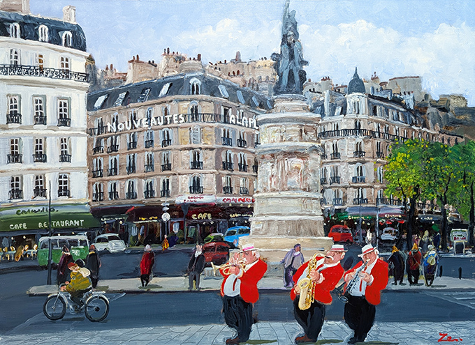 作家来場:1/11(日) , 15(木) , 21(水):午後1時~5時、24(土):午後1時~4時 街の広場や公園、カフェなどから聴こえてくる音楽にあわせて道行く人々が体を揺らせている光景や、バーの片隅でステージを終えたシンガーがくつろぐ横顔など、田中善明先生が描くパリの空の下に繰り...